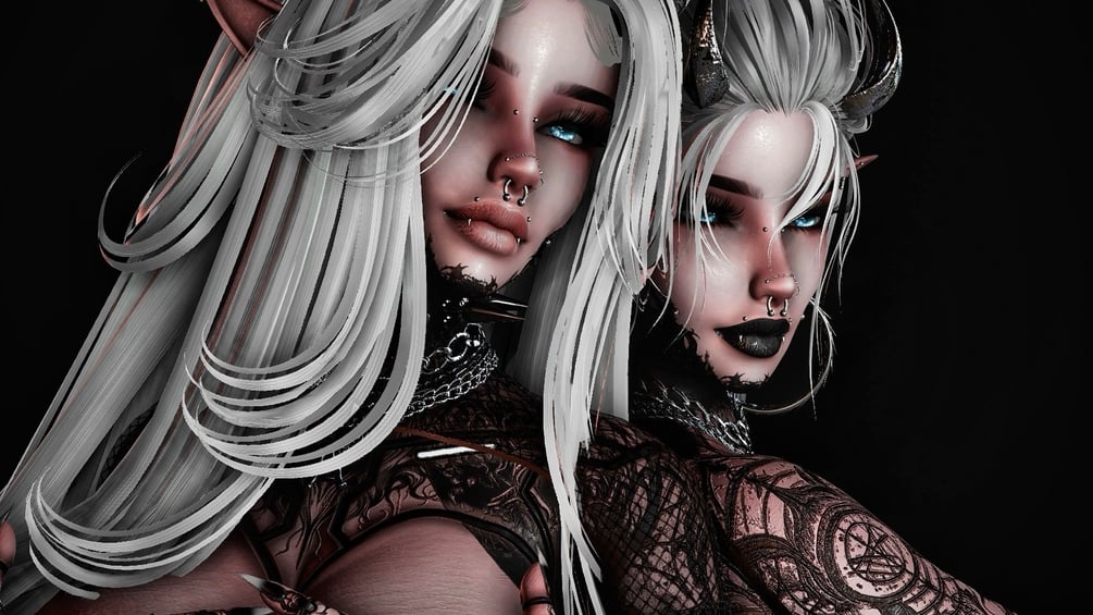 - Latex Fishnets, Dove Bun, Pigtails, Low Pony: Nessy 3D